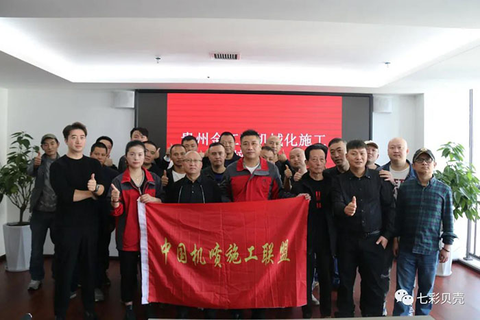 (授牌合影) 結(jié)束語 唯有把品質(zhì)和服務(wù)放在首位,才能獲得廣大消費者的青睞。自創(chuàng)立以來,七彩貝殼堅守質(zhì)量和服務(wù)生命線,對產(chǎn)品和服務(wù)精益求精,匠心雕琢,致力于為消費者打造最優(yōu)質(zhì)的產(chǎn)品、提供最專業(yè)的服務(wù)。“兩工三合”機械化施工培訓是中國機噴施工聯(lián)盟和七彩貝殼集團在推行機械化施工道路上的一個重要舉措,也是推動機噴施工轉(zhuǎn)型升級的關(guān)鍵。