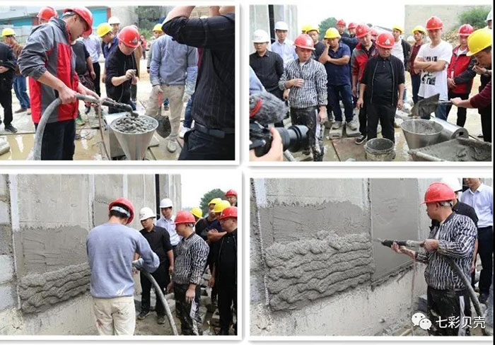 理論技術(shù)培訓 10月12日,“兩工三合”機械化施工培訓在貴陽市圓滿舉行。此次培訓由中國機噴施工聯(lián)盟、七彩貝殼香港集團有限公司、貴州金江匯節(jié)能材料有限公司聯(lián)合舉辦。本次培訓主要從理論和實操兩個方面開展,意在通過專業(yè)化的培訓,讓企業(yè)和一線工人加快施工模式的轉(zhuǎn)型。